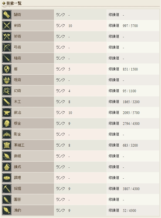 二日前に鍛冶ランクが10になり、昨日はメイン職の剣術士がランク10になりました。