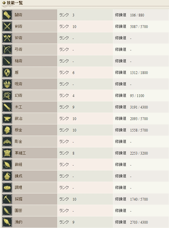 週末に残りの木工と革をランク10にしたいところですが、革のリーヴがランク10~ばっかりで進まない・・・